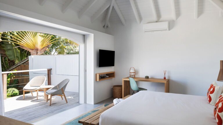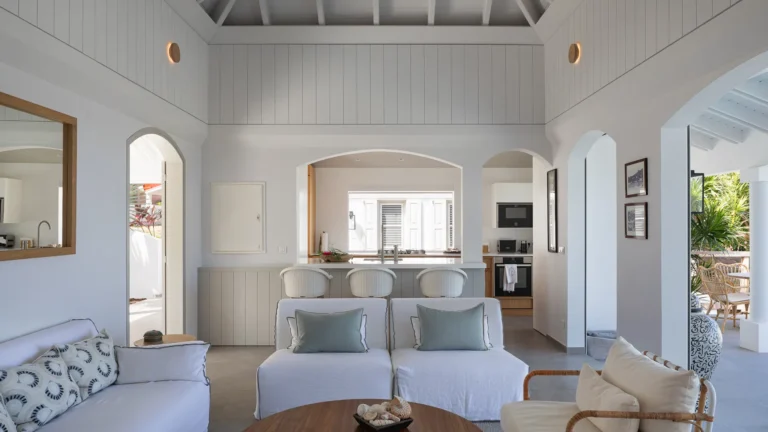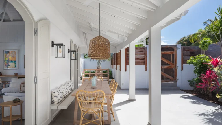 Elegant furnishings, curated artwork, and tasteful décor complement the villa’s natural surroundings. With a heated pool, gas barbecue, and all-day sun, Villa Bijou offers refined décor and marvelous outdoor spaces just steps from one of St. Barth’s most beautiful beaches.