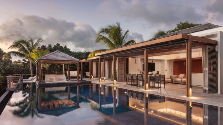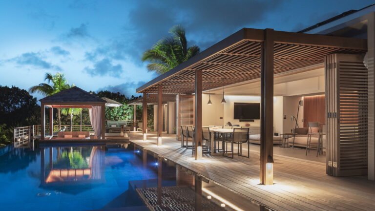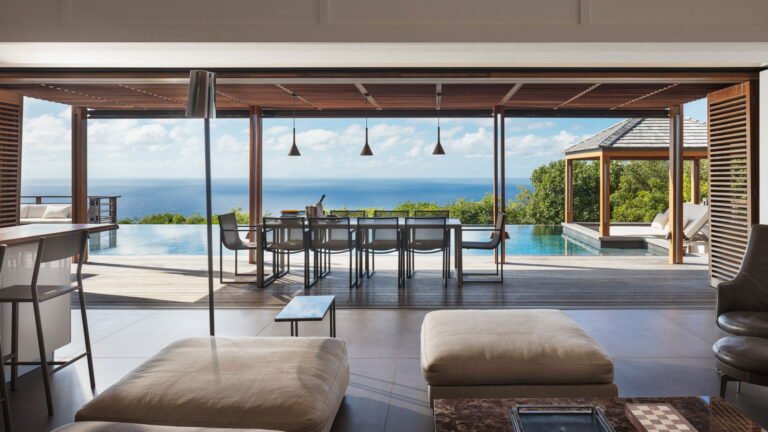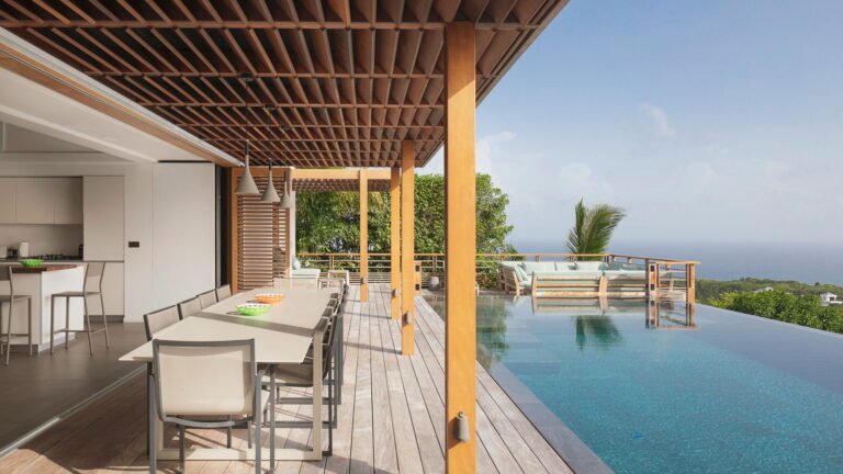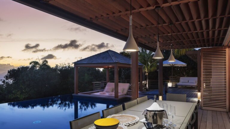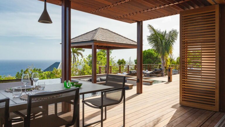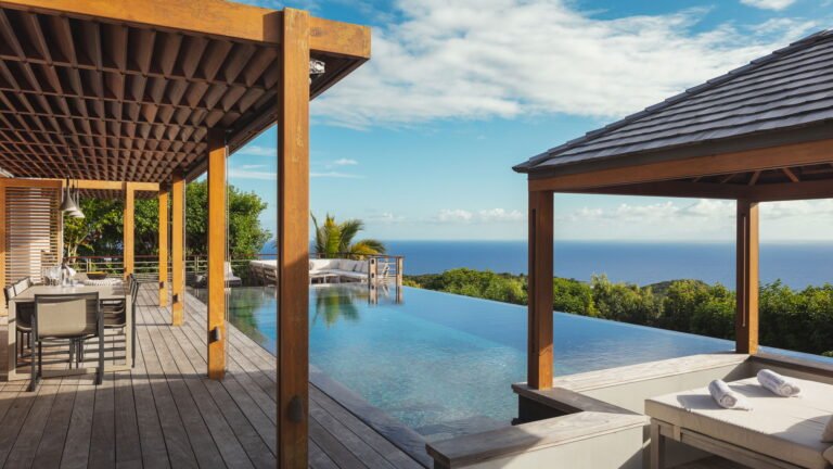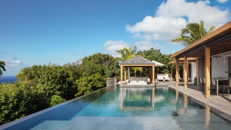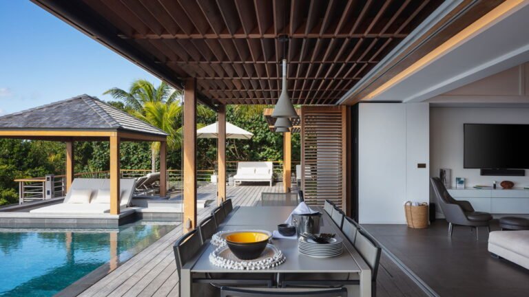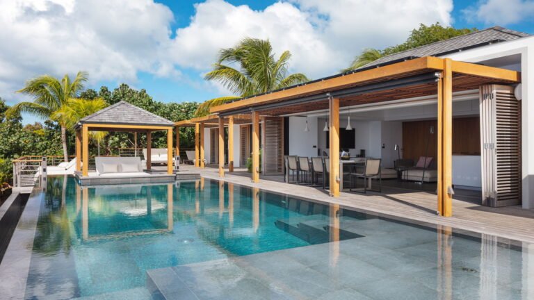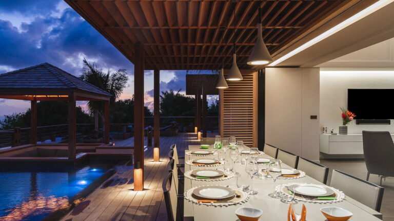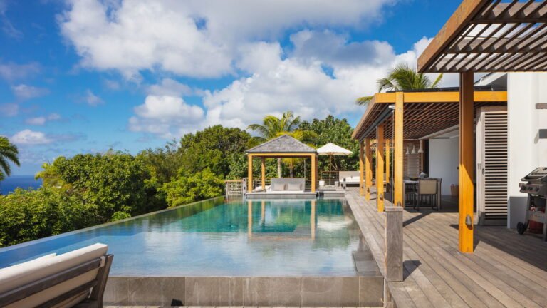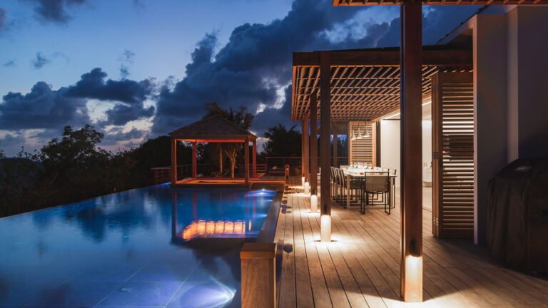 Caro is a beautiful five bedroom villa that shares equal distance to Gustavia and popular Gouverneur Beach. Great all day sun sets the stage for enjoying a day at the heated pool, taking a nap or reading a book in the gazebo, or enjoying lunch al fresco at the outdoor dining table.