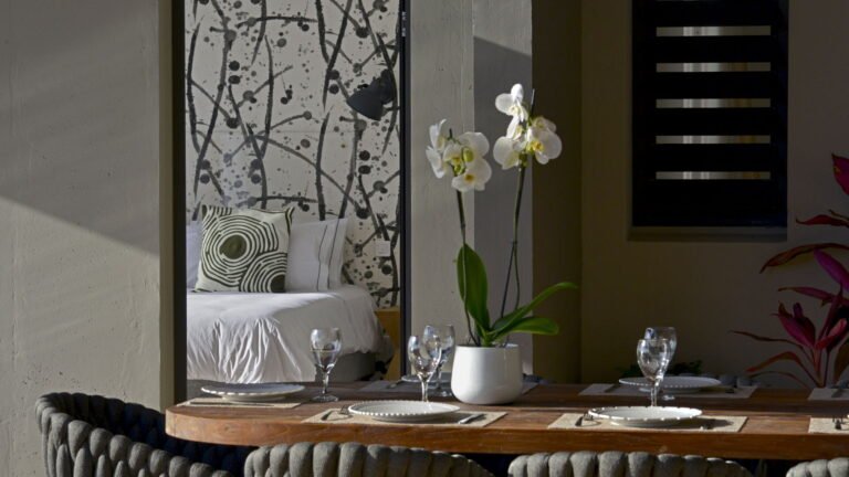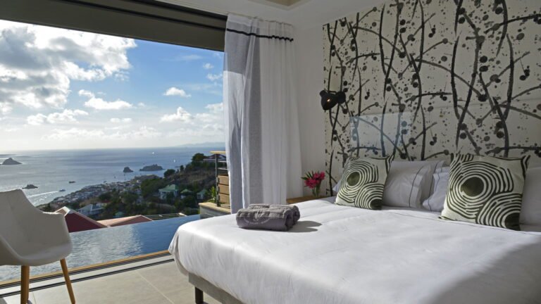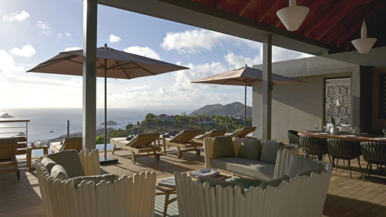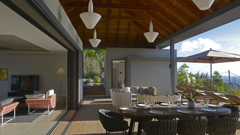 Villa Edunia pays tribute to Brazilian-American contemporary artist Eduardo Kac, with botanical prints, organic textures, and seamless connection to its natural surroundings. Just minutes up the Lurin hillside from Gustavia, this newly built four-bedroom residence enjoys expansive ocean views and especially stunning sunsets.