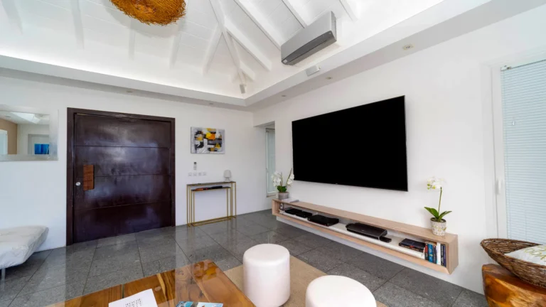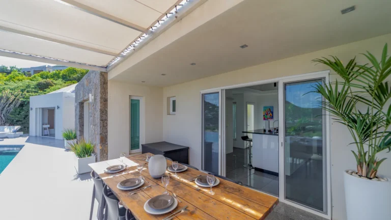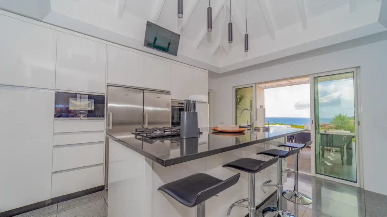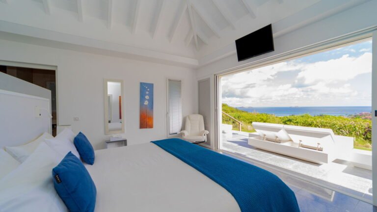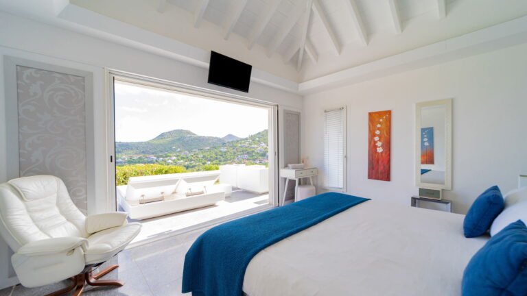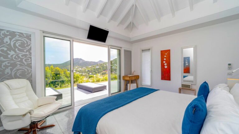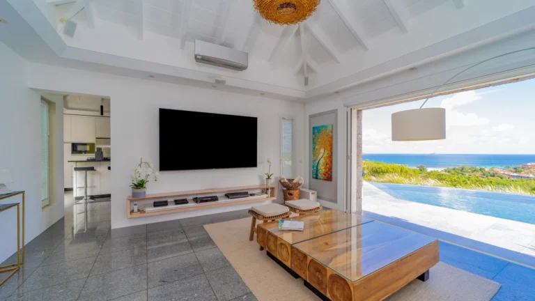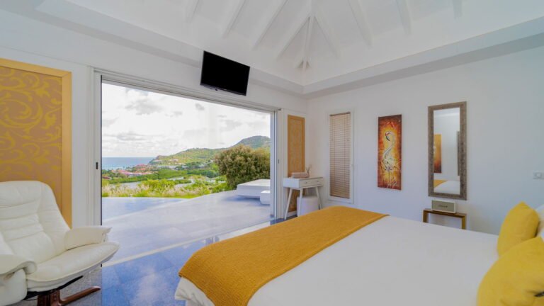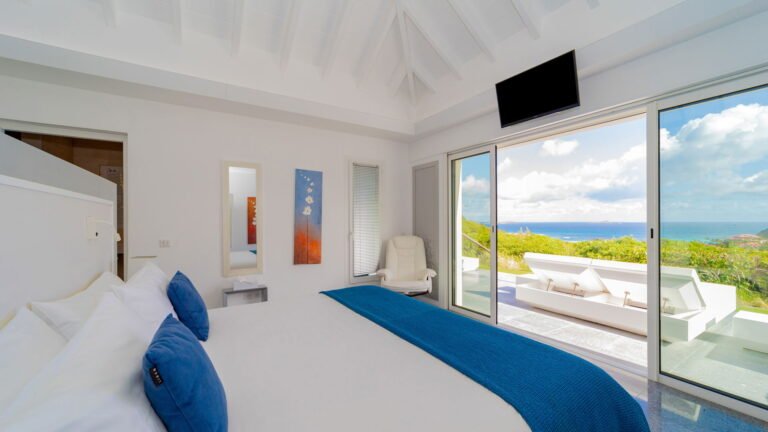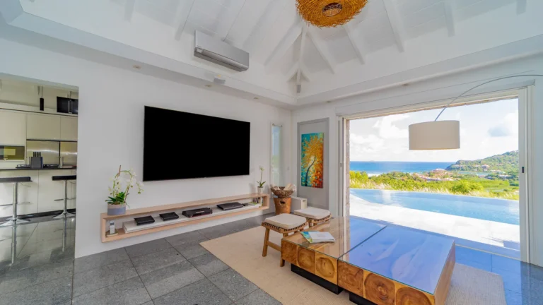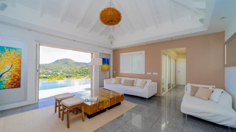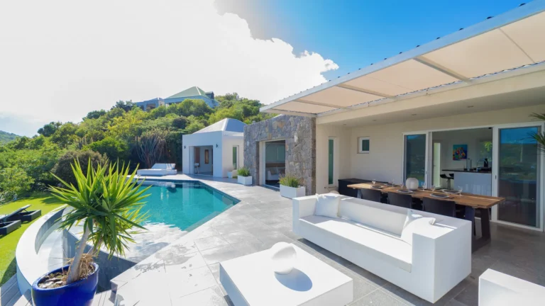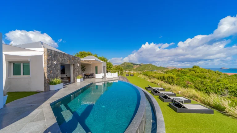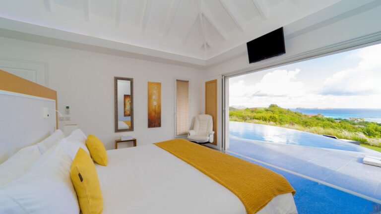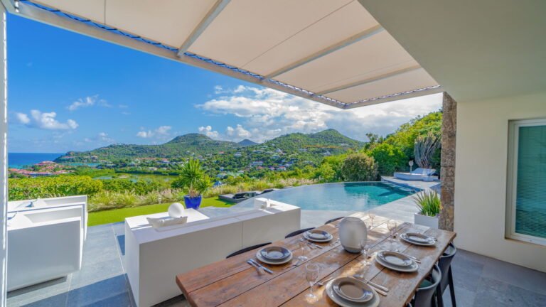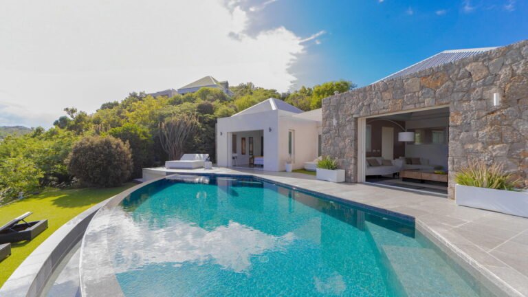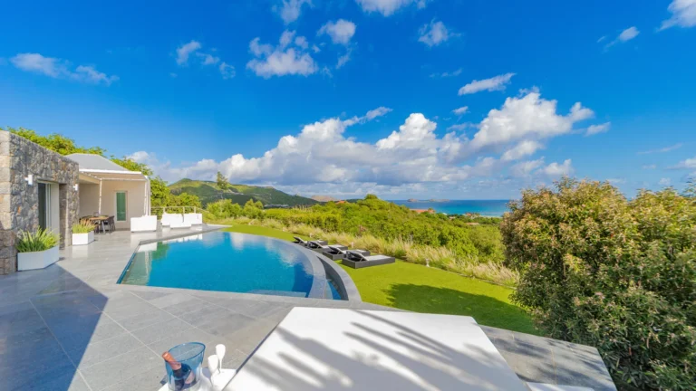 Ivy is the perfect two bedroom villa with equal bedrooms on either side of the living room, a well equipped kitchen, heated pool, pretty ocean views, and a large deck complimented by a small yard. The villa is high enough on the the hill for ocean views, yet low enough that it’s an easy walk to St Jean beach.