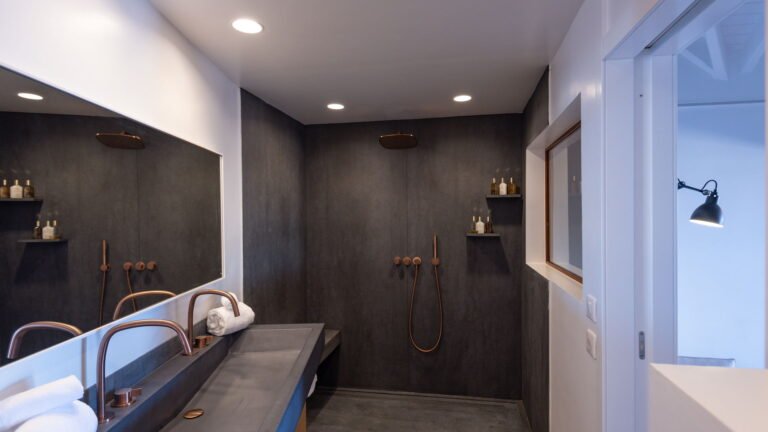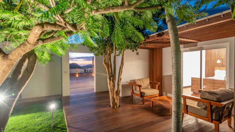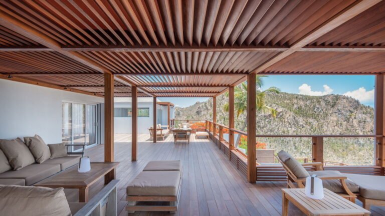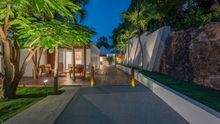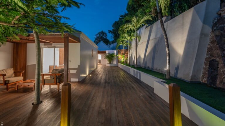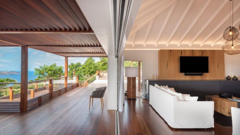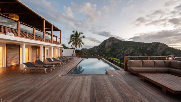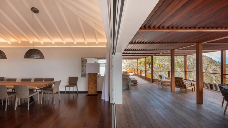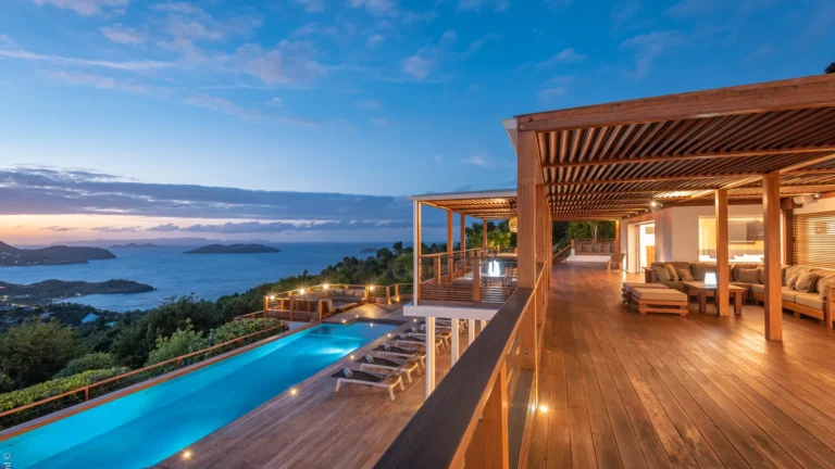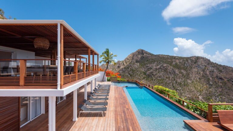 Villa Jable is truly a gem with distinct lines and ultra-contemporary personality. This six bedroom villa is perfect for families and couples alike. The upper level has the gourmet equipped kitchen, large air-conditioned living room, dining room with a table that can accommodate 15 people, and a large wrap around terrace. The six bedrooms have 4 kings and two other rooms that can be made up with two twins or a king.