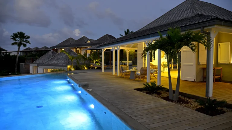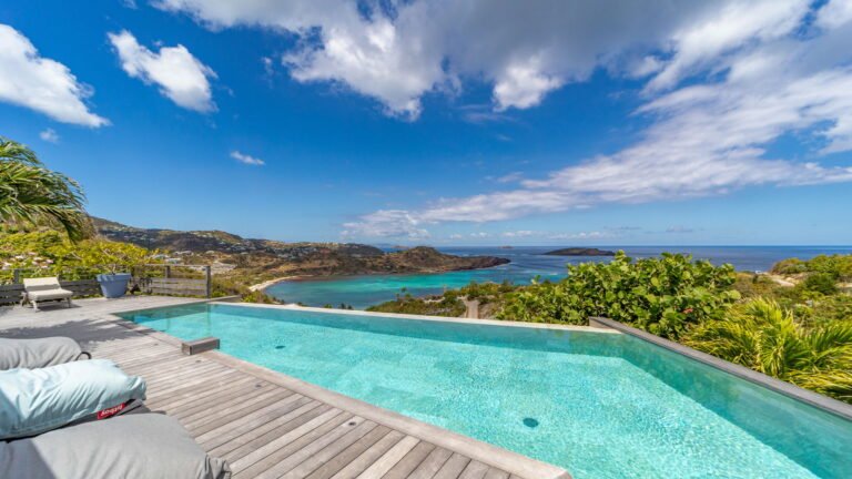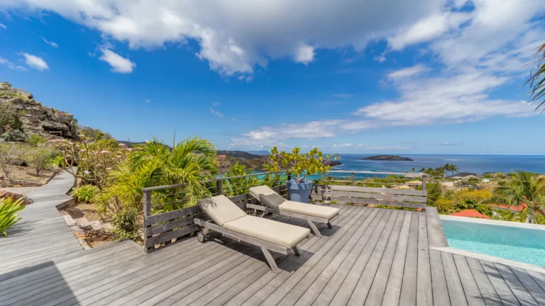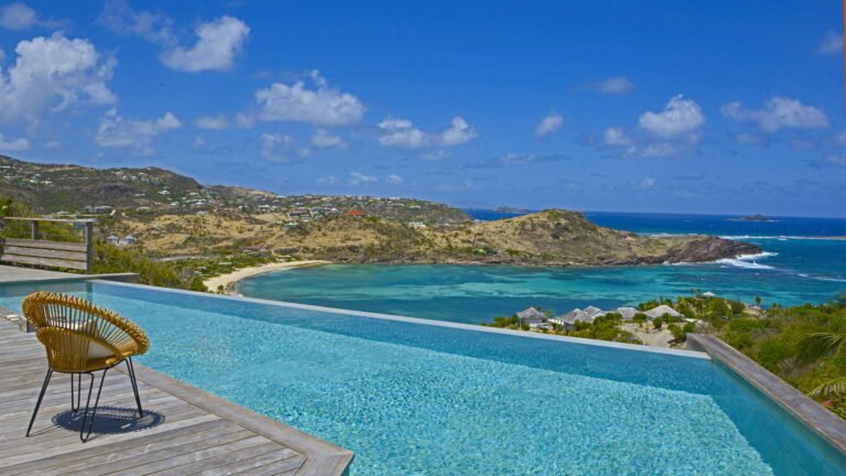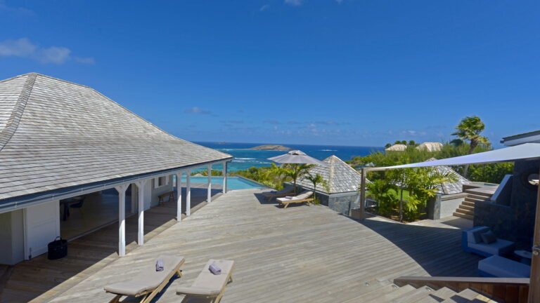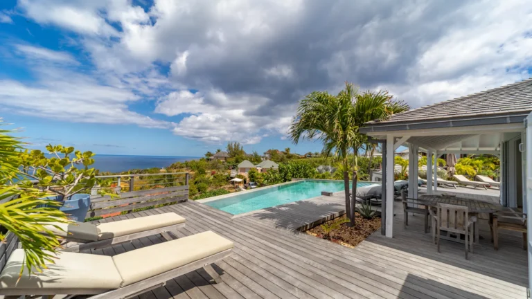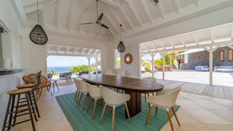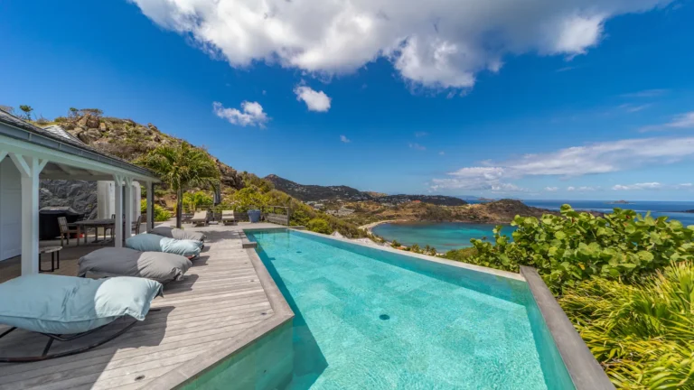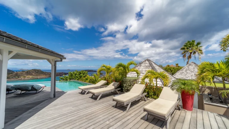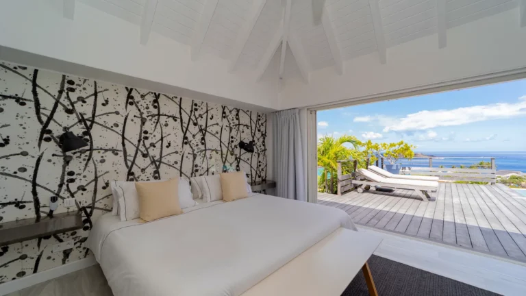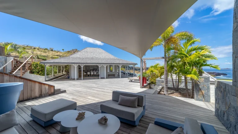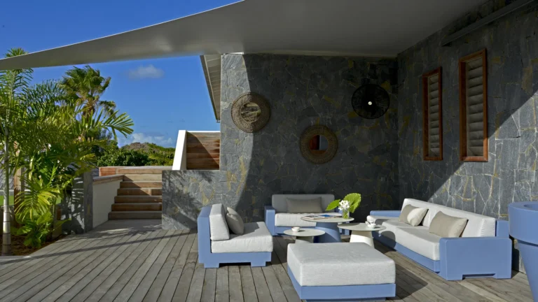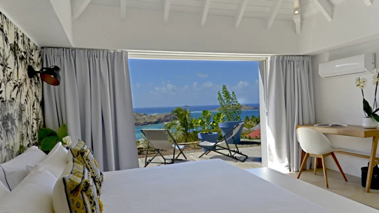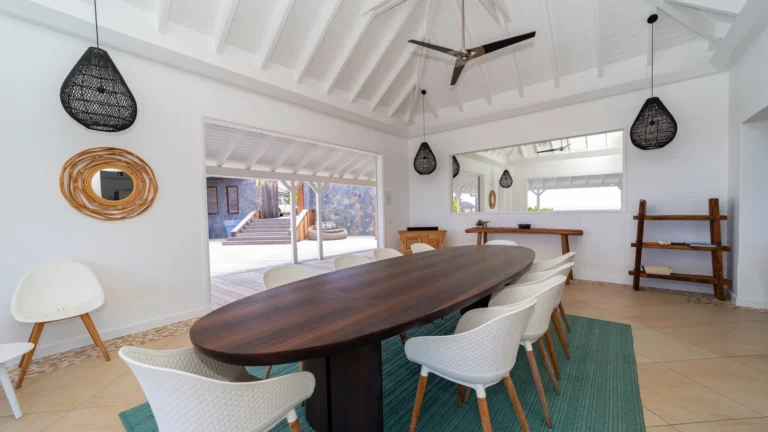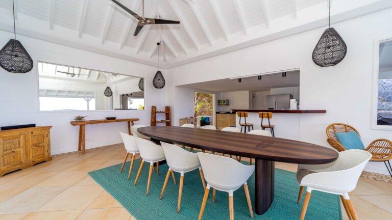 Set within the exclusive Domaine du Levant enclave, Villa Lagon Bleu is a colorful, multi-pavilion estate perfectly suited to large families or groups who value both space and privacy. The property cascades down a gentle hillside in a series of bungalows connected by pathways and tropical gardens, creating a village-like ambience. The main pavilion houses a gourmet kitchen, dining room, and an airy living area decorated with vibrant Caribbean hues and natural materials. French doors open wide to generous terraces offering endless spots for sunbathing and cocktails under the stars.