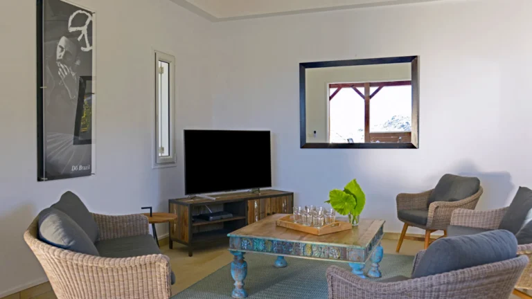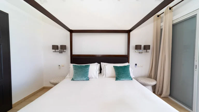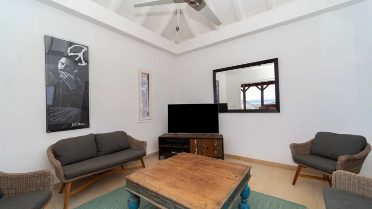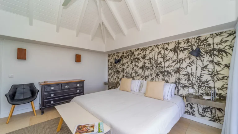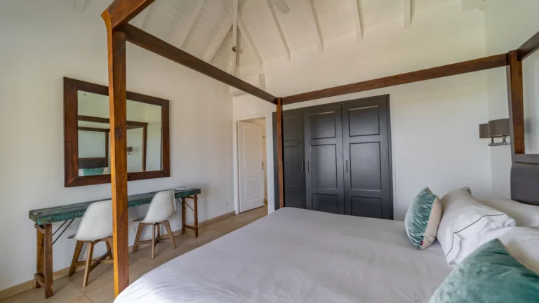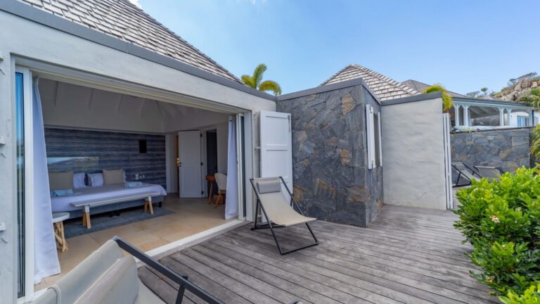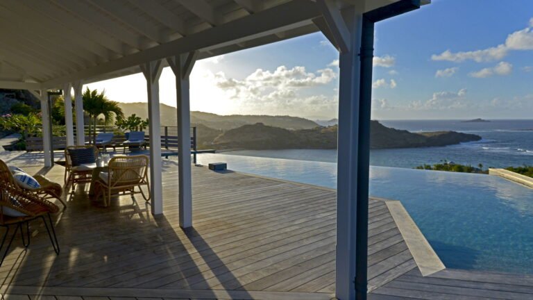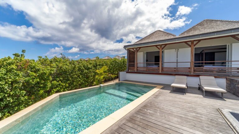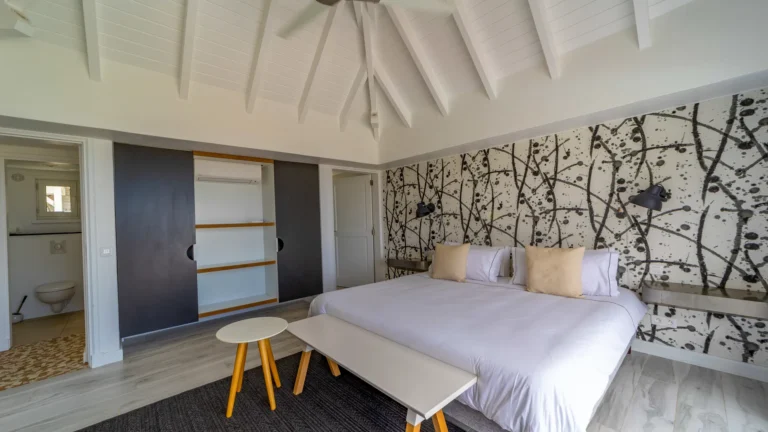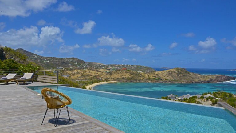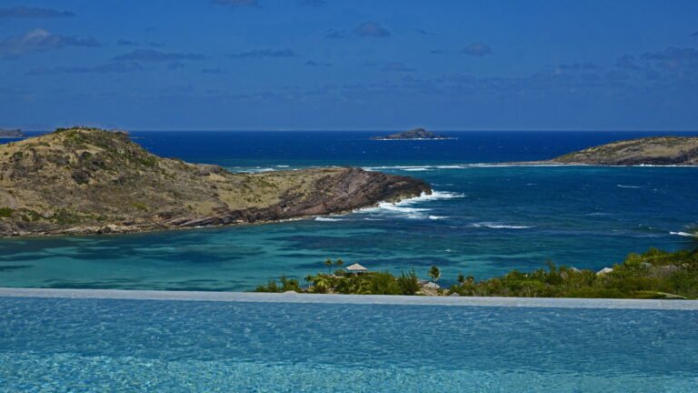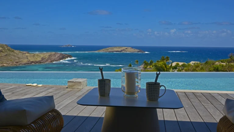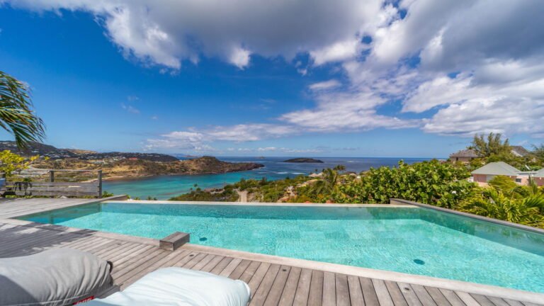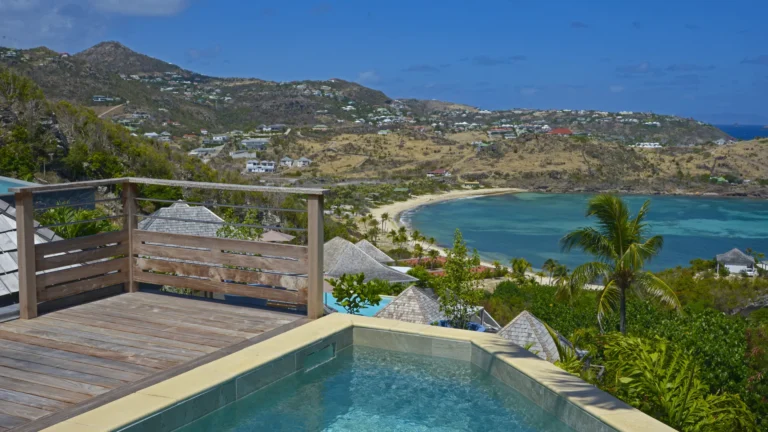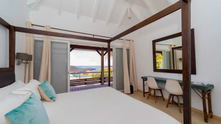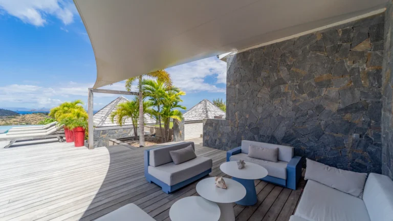 Set within the exclusive Domaine du Levant enclave, Villa Lagon Bleu is a colorful, multi-pavilion estate perfectly suited to large families or groups who value both space and privacy. The property cascades down a gentle hillside in a series of bungalows connected by pathways and tropical gardens, creating a village-like ambience. The main pavilion houses a gourmet kitchen, dining room, and an airy living area decorated with vibrant Caribbean hues and natural materials. French doors open wide to generous terraces offering endless spots for sunbathing and cocktails under the stars.