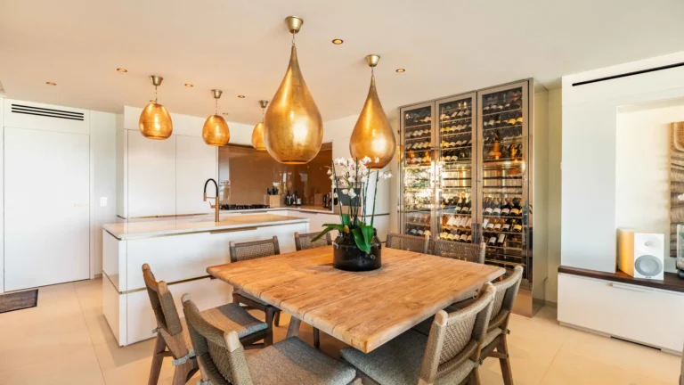 Guests enjoy access to a shared fitness room within the Issayah domaine. For extended stays or larger gatherings, Villa Lazuli can be paired with neighboring Villas Larimar, Quartz, and Tourmaline, creating a private estate of up to fourteen bedrooms.