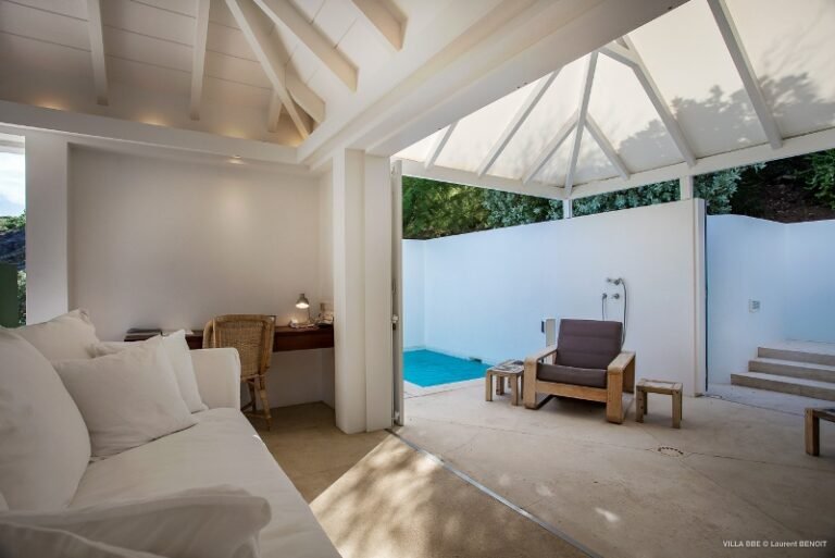 The villa’s palette of whites and greys amplifies the natural light, while the private terrace and plunge pool offer the perfect perch for morning coffee or evening sunsets. Though compact in scale, Little Caramba delivers outsized serenity and style, whether you’re unwinding with a film, sipping an espresso, or just watching waves roll in.