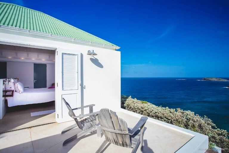 Villa Little Caramba is an intimate one-bedroom retreat perched above the sea in Pointe Milou. Designed for couples who crave simplicity with an unforgettable view, this studio-style hideaway blends contemporary aesthetics with smart functionality. The open-plan layout is airy and inviting, where a king-size bed, cozy lounge, and fully equipped kitchenette all face the spectacular Atlantic panorama through expansive floor-to-ceiling windows.