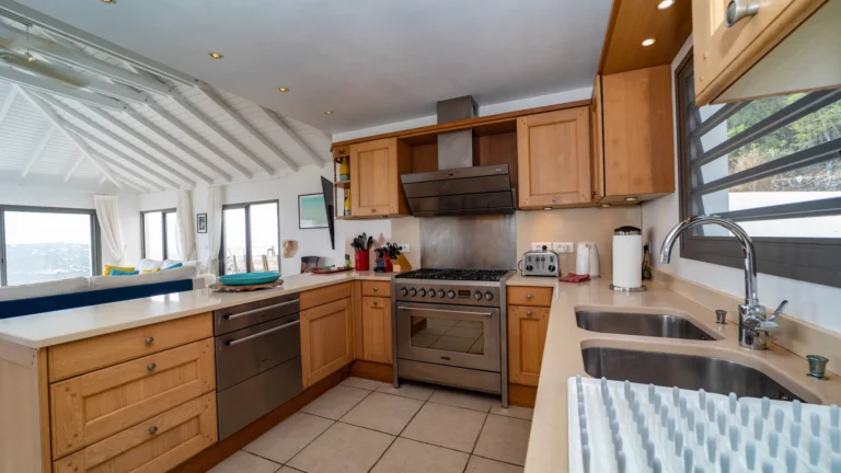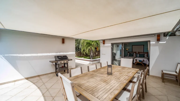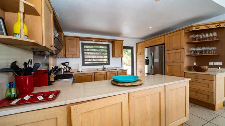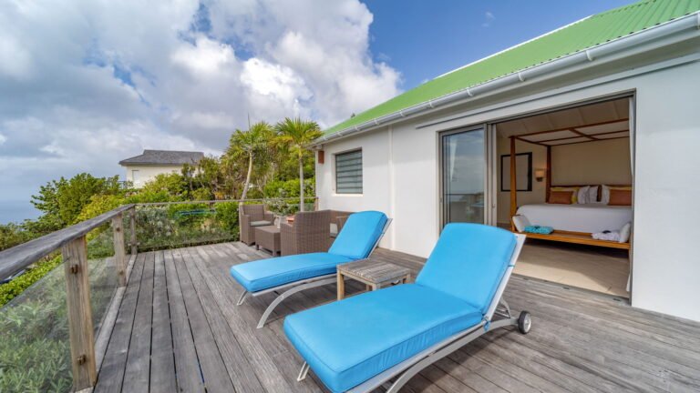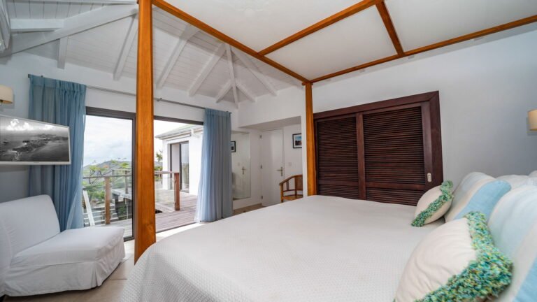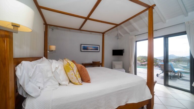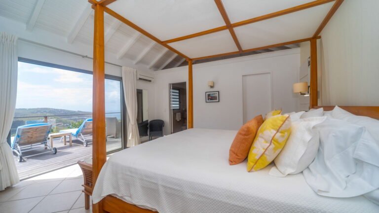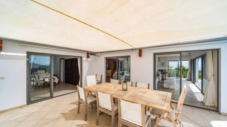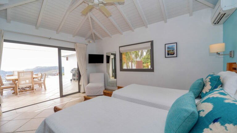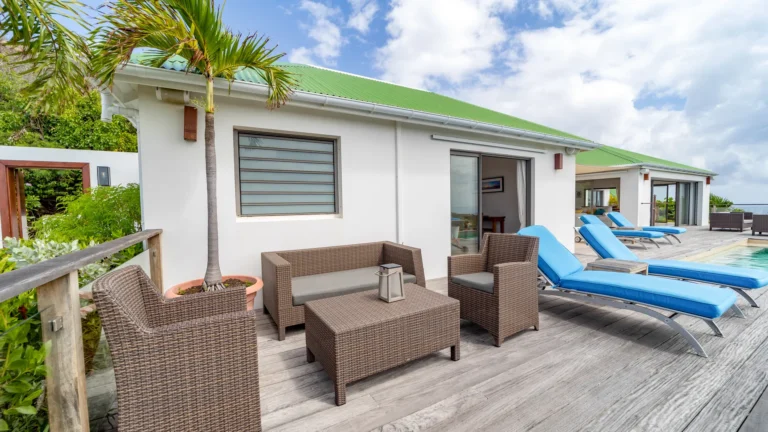 Finished in light wood and crisp white cotton, accented by soothing shades of blue and green, Villa Mirador (ING) offers a bright, sun-washed ambiance that immediately feels welcoming. Outdoors, a generous ipe wood deck and shimmering pool frame sweeping views over Gustavia Harbor and the brilliant blue of the Caribbean Sea.The villa features an inviting living room with plush seating, seamlessly connected to both indoor and outdoor dining areas. Set toward the rear of the home, the modern, fully equipped kitchen opens directly onto the terrace, allowing the spectacular views to be enjoyed from every angle.