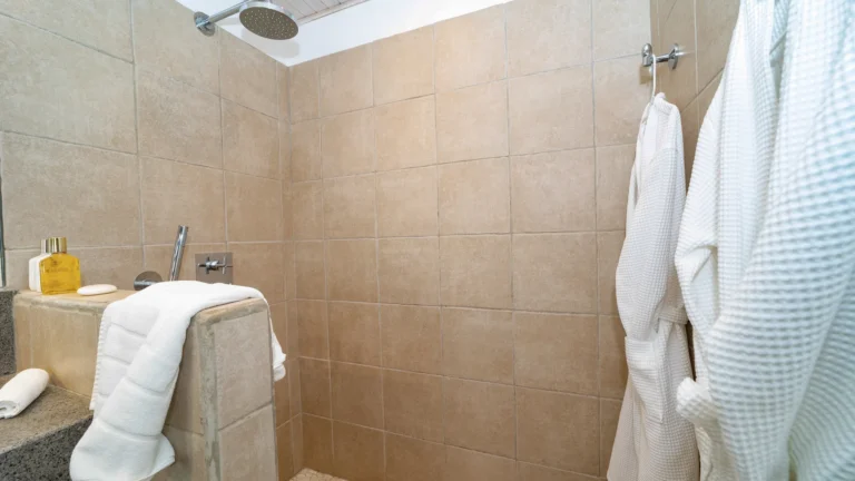 Each bedroom is private and independently accessed. Three suites feature four-poster king beds and en-suite bathrooms, while the fourth bedroom offers twin beds with its own en-suite bath. All bedrooms open onto spacious, comfortably furnished terraces overlooking the scenery.