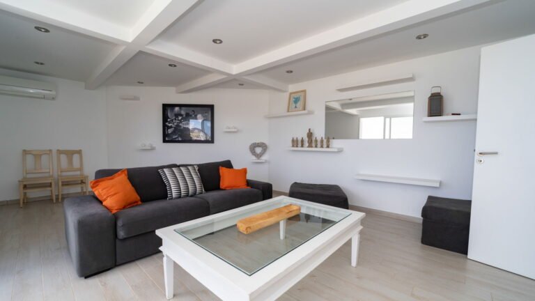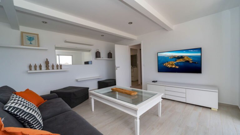 The kitchen is compact yet highly functional, featuring warm wood countertops, a convenient pass-through to the living area, and premium appliances, including a six-burner Siemens cooktop. Tucked behind the main living space, a second, air-conditioned lounge offers a quiet retreat for reading or television.