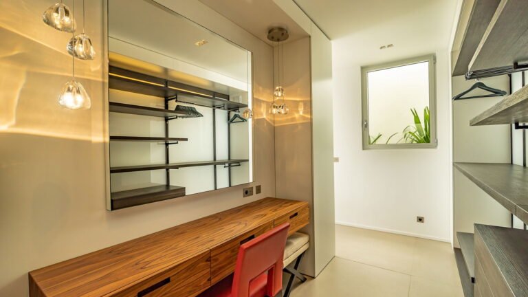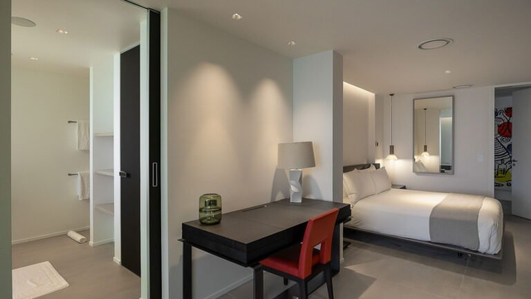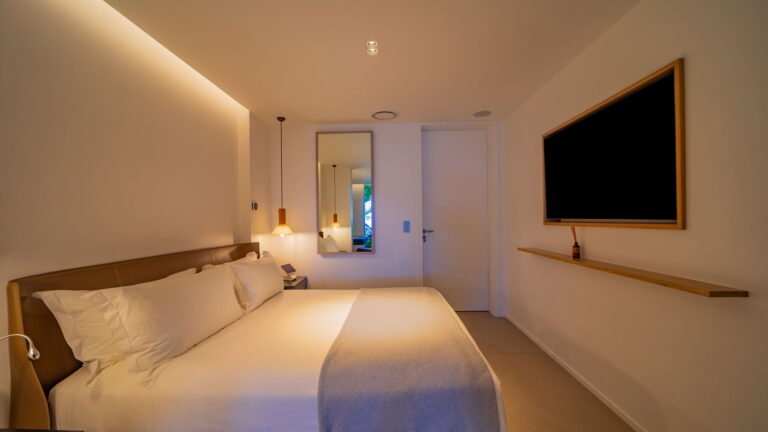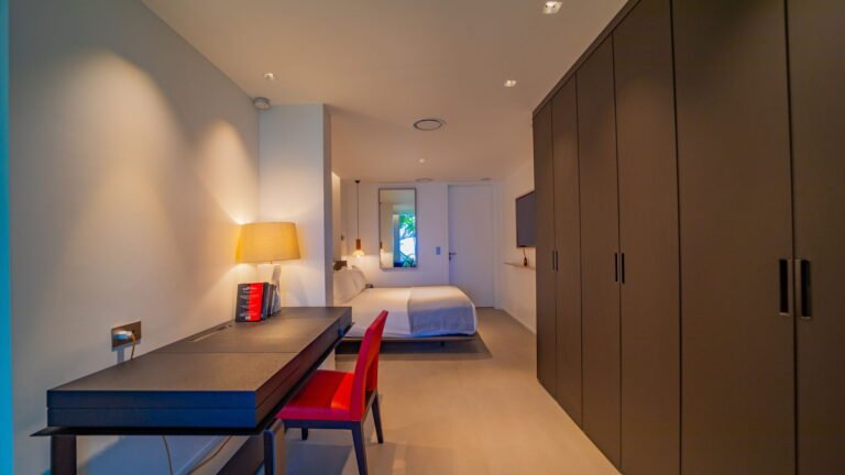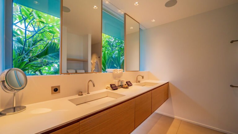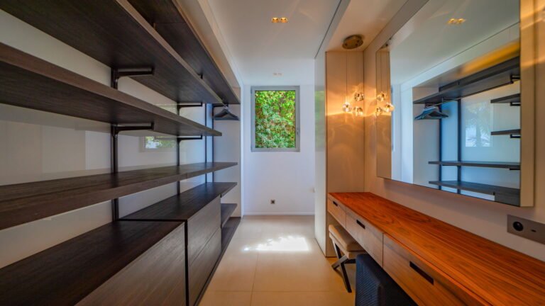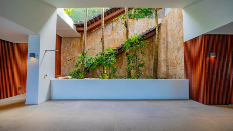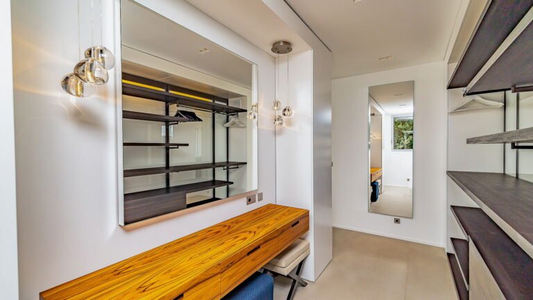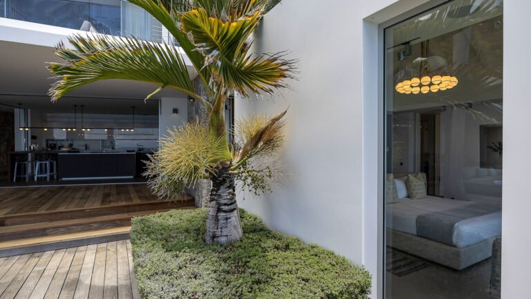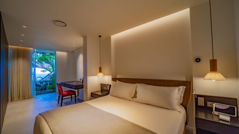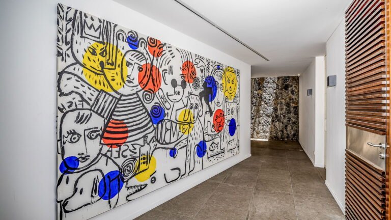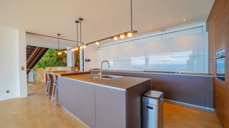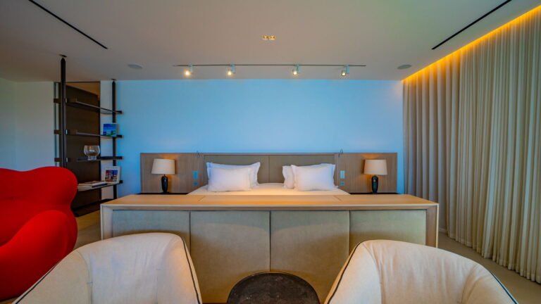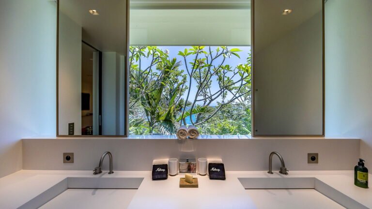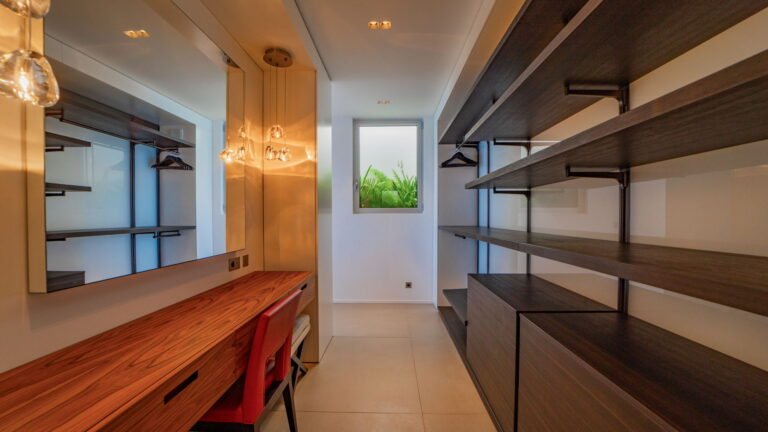 All living spaces and bedrooms enjoy sweeping views over Corossol Beach and Gustavia Harbor. During certain seasons, sunsets transform the horizon into a dramatic display of color. Thoughtfully designed lighting throughout the villa highlights different focal points as the day unfolds—whether it’s the scenery outside, the curated art collection, or the shared moments with family and friends.