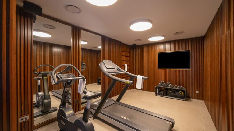 A dedicated fitness room is conveniently located near the parking area, allowing guests to maintain their routine while away.